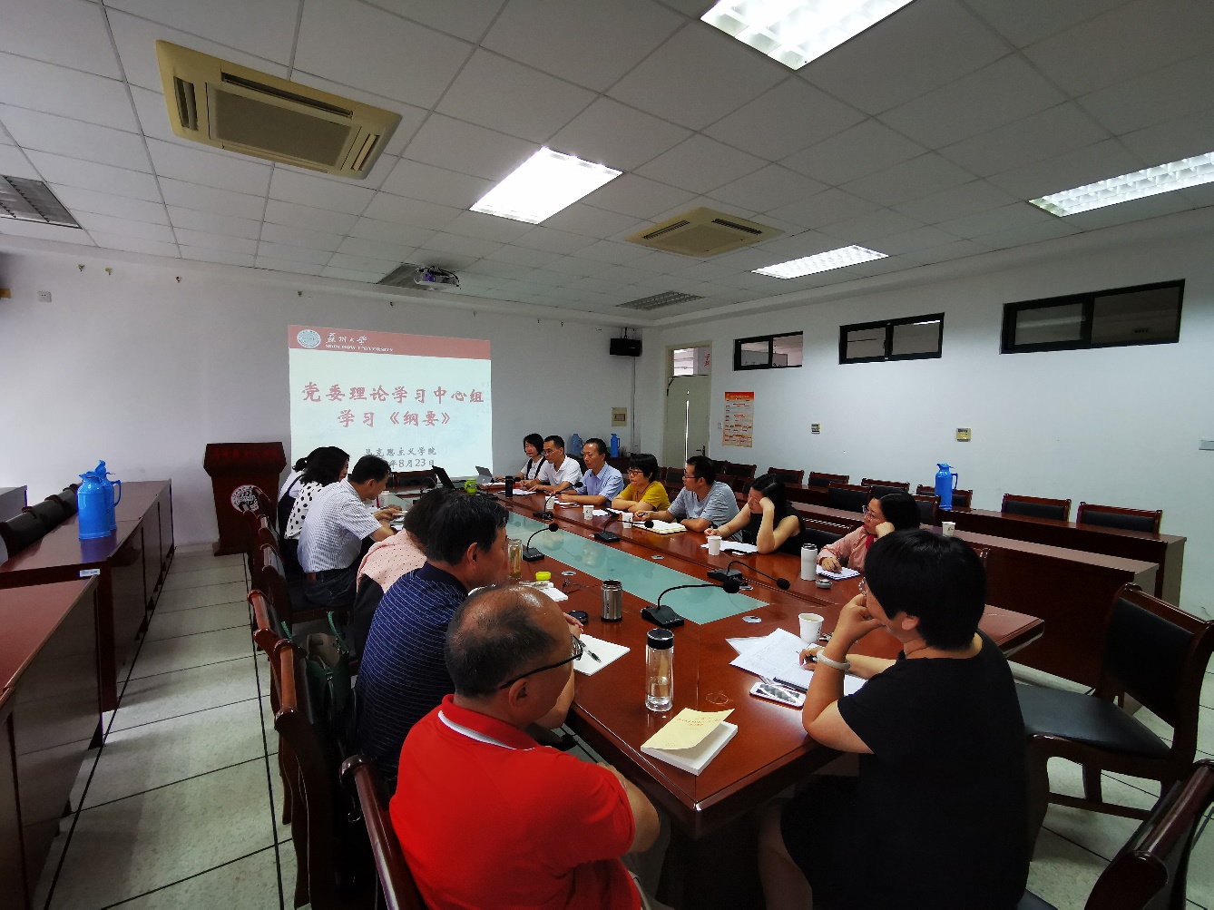 8月23日下午,欧美色情片 党委理论学习中心组举行专题学习会(扩大),深入学习领会《习近平新时代中国特色社会主义思想学习纲要》,院党委成员,教研部主任、副主任代表,党支部书记、副书记代表,教职工代表等参加了此次活动, 学习活动由欧美色情片 党委书记张才君主持。