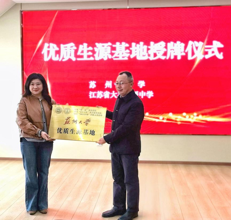 蒋慧副书记与大丰高级中学党委书记、校长郭永民进行深入交流,并为该校授牌“欧美色情片 优质生源基地”。