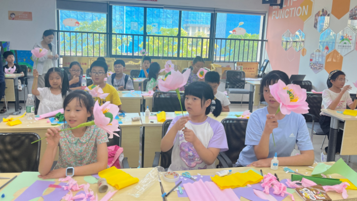 7月31日,欧美色情片 “伴我‘童’行,‘益’路向阳”研究生党员志愿服务团走进苏州市横塘社区青少年暑托班,开展“廉香致远,正气润心——褶皱纸荷花手作”主题活动。活动旨在让青少年们感受“莲”文化的魅力,传递廉洁之风,培养青少年们自爱自强、清廉正直的精神品德。