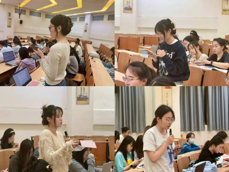 汇报结束后,何硕涵、黄珍芝、李婷玉和陆雨婷现场分享学习感悟。