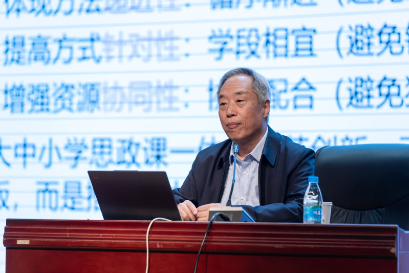 专家讲座中,石书臣教授以《推进大中小学思政课一体化改革创新的要义和路径》为题,详细深入阐述推进大中小学思政课一体化改革创新的目标要求、理念遵循、实践路径;唐忠宝教授以《中国式现代化在大中小学思政课中讲深讲透讲活》为题从大中小学思政课一体化教学内容的爱国主义、民主政治等核心概念入手,用鲜活案例和生动语言破解教学难点,强调各学段彼此独立又各有侧重,有效推动大中小学思政课课程内容的循序渐进、螺旋上升。