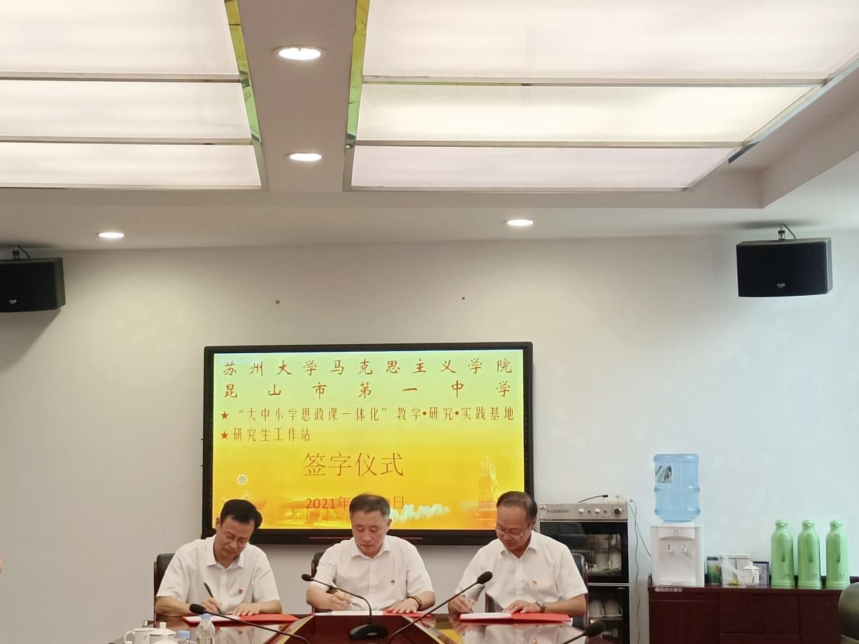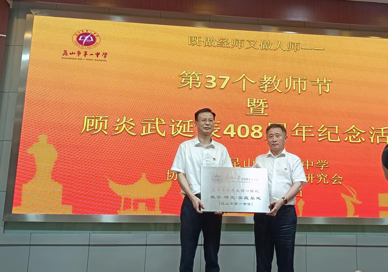 与昆山市第一中学合作共建大中小学思政课一体化教学•研究•实践基地和研究生工作站授牌启动