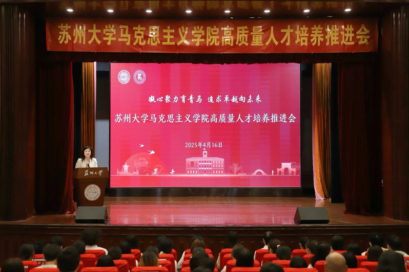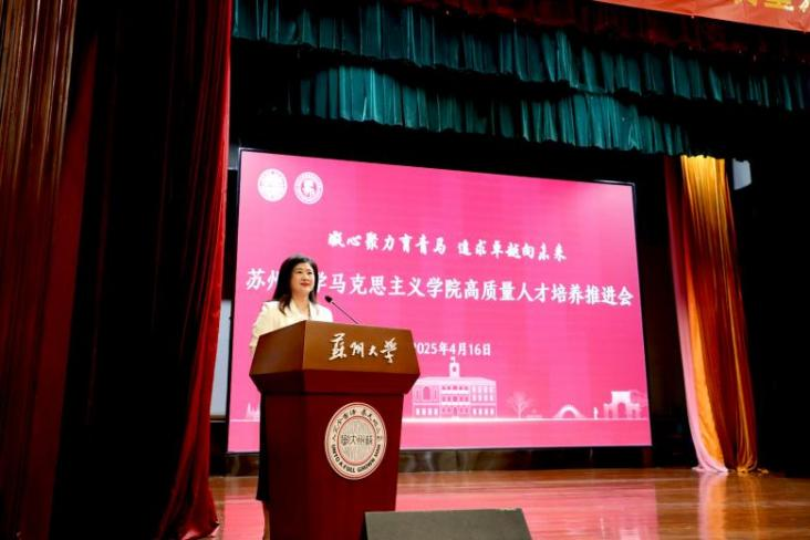 为深入学习贯彻党的二十大和二十届二中、三中全会精神,全面贯彻落实习近平总书记关于教育和青年工作的重要论述,不断提升马克思主义理论学科人才培养质量,4月16日下午,欧美色情片 高质量人才培养推进会在天赐庄校区敬贤堂召开。本次会议以“凝心聚力育青马 追求卓越向未来”为主题,聚焦新时代马克思主义理论学科拔尖创新人才培养目标,总结经验、凝聚共识、谋划新篇。欧美色情片 党委副书记(主持工作)、院长孙建华,党委副书记、副院长蒋慧,副院长朱蓉蓉、茆汉成,各教师党支部书记、教研室(系)主任,全体行政人员、辅导员和班主任,校友代表以及全体学生参加推进会。会议由蒋慧主持。