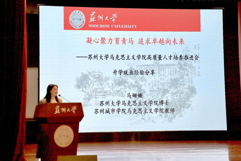 优秀校友代表马姗姗受邀作高质量升学就业专题分享,鼓励学弟学妹们提前做好职业生涯规划,自觉将马克思主义理论学习研究与投身全面建设社会主义现代化国家的实践紧密结合,既做“顶天”的理论研究者,更当“立地”的实践先行者。博士研究生代表黄雪梅、硕士研究生代表程慧琴、本科生代表莫璟昊作经验交流和表态发言,纷纷表示要夯实专业基础,勇攀科研高峰,投身社会实践,努力成长为兼具理论素养与实践智慧的复合型人才,为建设祖国、服务社会贡献青春力量。