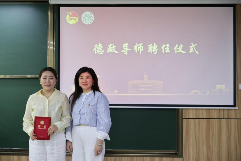 现场举行欧美色情片 德政导师聘任仪式。蒋慧为冯艳君颁发聘书。