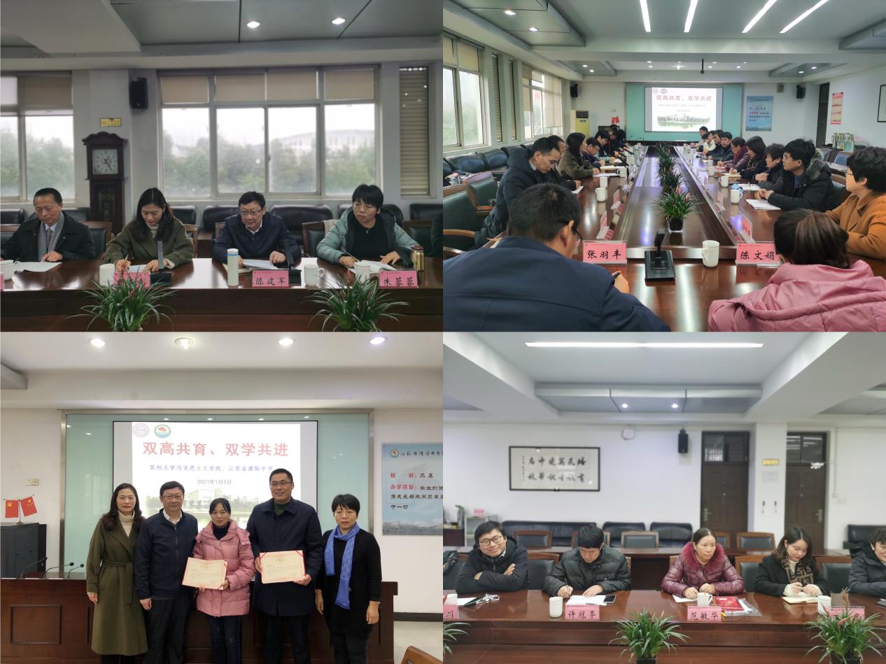 听课结束后,校院双方围绕“加快大中小学思政课一体化建设、更好聚焦立德树人根本任务”主题召开了理论研讨会。江苏省溧阳中欧美色情片 长周冬英,欧美色情片 党委书记陈建军,副院长朱蓉蓉教授、纲要教研室党支部书记范敏华副教授等与会人员先后发言。大家表示,要认真学习贯彻习近平总书记关于大中小学思政课一体化建设的重要论述,牢记为党育人、为国育才使命,全面提高教育教学技艺,着力在培养德智体美劳全面发展、堪当民族复兴大任时代新人上下功夫,推动学生全面成长、全面进步。周冬英校长和陈建军书记就下阶段加强省溧中与苏大马院合作达成广泛共识。会议结束前,陈建军书记和朱蓉蓉副院长还为张羽丰老师和陈文娟老师颁发了荣誉证书。