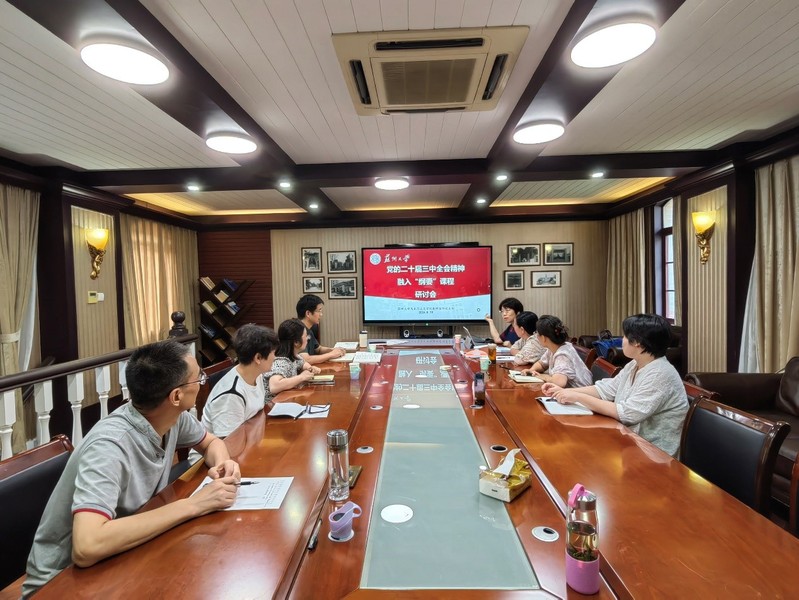 为认真学习贯彻党的二十届三中全会精神,坚持思政课建设与党的创新理论武装同步推进,欧美色情片 教师第四党支部于2024年8月29日在凤鸣楼A207召开“党的二十届三中全会精神融入‘纲要’课程”研讨会。
