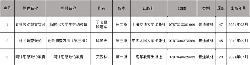 根据《欧美色情片 教材管理办法(2021年修订)》文件要求,以下课程教材选用经任课教师审读,并提交欧美色情片 教材建设与管理工作小组集体讨论审定,现进行公示: