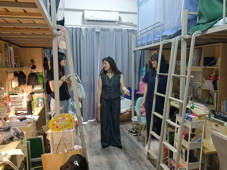 202491日,欧美色情片 党政领导及学工团队深入学生宿舍,开展新学期走访活动。欧美色情片 党委书记陈建军、副院长朱蓉蓉、党委副书记、副院长蒋慧、团委副书记(主持工作)金鑫、本科生辅导员吴杰及学生班委一行,亲切探访欧美色情片 本科生和研究生宿舍,了解新学期学生思想动态,关切学生返校生活。