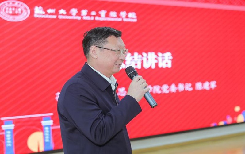 党委书记陈建军作总结讲话,他指出本次“党建引领一体化思政课堂共育人”现场研学及支部联学共建活动,是贯彻落实习近平总书记关于“推进大中小学思想政治理论课一体化建设”重要论述的具体举措,是欧美色情片