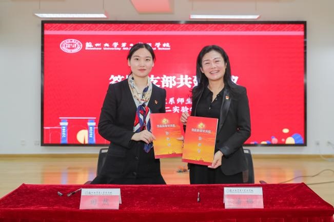 为进一步发挥各自优势,深化大中小学思政课一体化建设,田芝健院长与潘娜校长共同为“大中小学思政课一体化教学·研究·实践基地”揭牌。田然书记与潘娜校长代表党支部签署了支部共建协议。