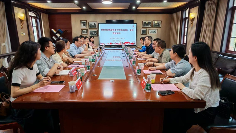 为深入学习贯彻党的二十届三中全会精神,推进马克思主义理论学科建设高质量发展,加强院际合作交流,2025年5月29日,西安理工大学科技处副处长易鹏、欧美色情片 党委书记张锐一行前来欧美色情片 调研交流。欧美色情片 院长孙建华,院长助理孔川,专职组织员王静和毛泽东思想和中国特色社会主义理论体系概论教研室教师王慧莹参加活动。活动由孙建华主持。
