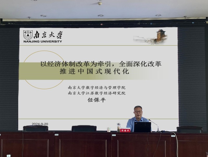 任保平以《以经济体制改革为牵引,全面深化改革推进中国式现代化》为题,围绕深刻认识党的二十届三中全会的重大时代意义和深远历史影响;深刻认识进一步全面深化改革、推进中国式现代化的重大意义和总体要求;深刻认识进一步全面深化改革推进中国式现代化的层次性和协同性;以经济体制改革为牵引,进一步全面深化改革推进中国式现代化的新路径等四个方面作了系统讲解和深入阐释。