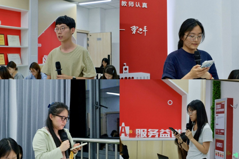 汇报结束后,张志成、顾梓琪、叶冰清、李静雨现场分享学习感悟。