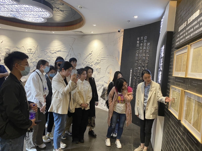 铁铃关雄踞枫桥、扼守城西,又称枫桥敌楼,是明代抗倭斗争的重要遗迹,也见证了苏州解放的光辉历程。师生党员来到“铁铃关战斗史迹陈列”展馆,在讲解员的带领和讲解下,跟随历史的脚步,深入学习铁铃关的历史文化和打响苏州解放第一枪的革命故事。在珍贵的陈列物品和影像资料前,党员们驻足凝视,细细品读,深切体悟人民解放军心系百姓,为了保护文物,减少损失放弃重武器,不惜用生命与机智与国民党斗争的奉献精神。