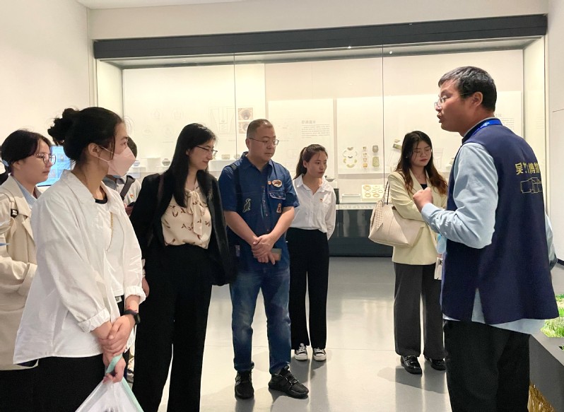吴文化博物馆是一座以吴文化展示为主题的博物馆,被誉为“最江南的博物馆”。博物馆的常规陈列以“吴地文化一万年”为主线,对“吴文化”与“吴地文化”进行解读。在讲解员的带领下,师生党员沉浸式参观了“风雅颂吴中”和“考古探吴中”展厅。阅读注释图文、端详历史藏品,党员们从一件件历史文物中领略吴地遗珍魅力,明晰吴文化的发展历程;知识答疑互动、倾听文物声音,党员们在现代科技的光影中感受吴文化的深厚底蕴;扫码线上拓展、探讨交流分享,党员们在考古史料中多维度了解吴地的人文地理和历史风貌。通过沉浸式的参观与体验,师生党员全方面地了解了吴中地区的悠久历史与灿烂文明,纷纷表示要增强历史主动,厚植文化自信,强化使命担当,用好吴地优秀文化资源,为传承中华文化贡献智慧与力量。