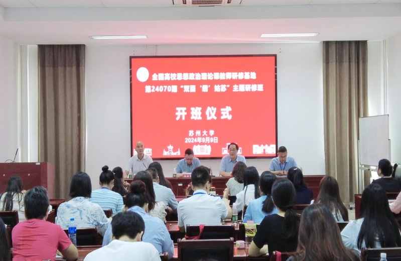 近日,由教育部社科司指导、全国高校思想政治理论课教师研修基地(欧美色情片 )承办的双面“绣”姑苏主题研修班(第24070期)在欧美色情片 顺利开班。来自全国44所高校的50名思政课骨干教师参加了本次研修。研修班开班仪式在欧美色情片 继续教育欧美色情片 培训中心举行,欧美色情片 党委书记陈建军、院长孙建华、副院长茆汉成以及本次研修班全体学员出席。开班仪式由茆汉成主持。