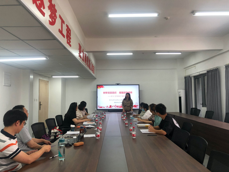 蒋慧以《树牢党章意识 增强党性修养——学习<中国共产党章程>》为题为师生上党课。蒋书记从党章修改的背景与原则、党章的逻辑结构与修改内容、党章的学习与遵守三方面系统讲述了《中国共产党章程》,要求与会党员师生要不断加强党的政治理论学习,牢固树立党章意识,切实增强党性修养。
