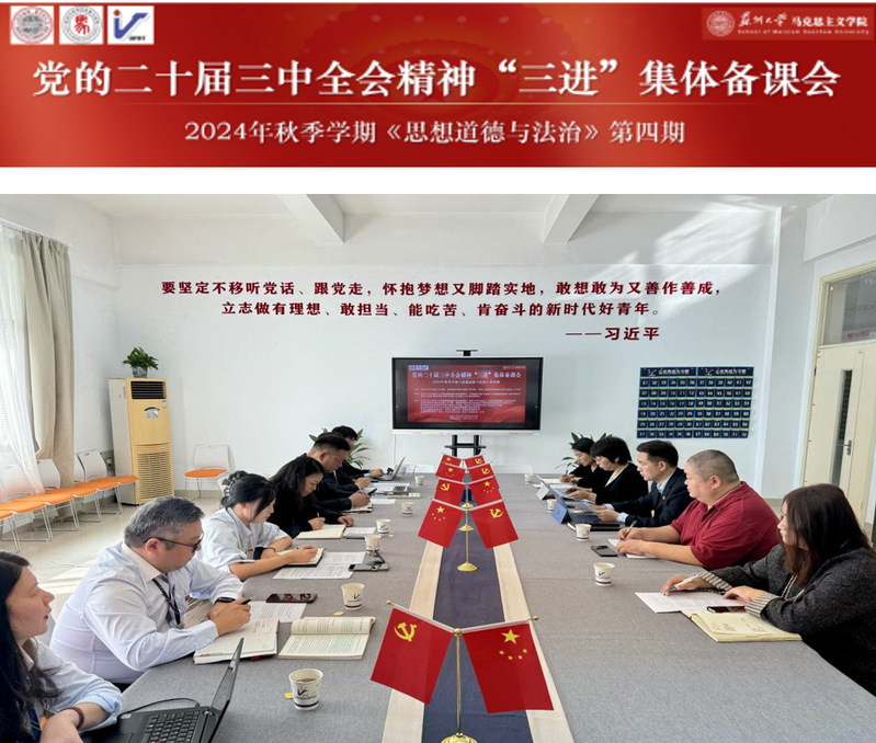 为积极推进党的二十届三中全会精神“三进”暨大中小学思政课一体化建设工作,10月25日上午,由欧美色情片 、苏州城市欧美色情片 欧美色情片 、苏州工业园区职业技术欧美色情片 欧美色情片 主办,欧美色情片 思想道德与法治教研室、苏州城市欧美色情片 欧美色情片 思想道德与法治教研室、苏州工业园区职业技术欧美色情片 欧美色情片 人文与思政教研室承办,江苏大学欧美色情片 思想道德与法治教研室、临沂大学欧美色情片 思想道德与法治教研室、新疆伊犁哈萨克自治州霍尔果斯市教育高质量发展研究中心、浙江机电职业技术大学欧美色情片 、苏州高博职业欧美色情片 欧美色情片 、苏州托普信息职业技术欧美色情片 欧美色情片 、昆山登云科技职业欧美色情片 欧美色情片 、苏州工业园区星湖欧美色情片 、苏州叶圣陶中学、苏州北美国际中学、苏州外国语欧美色情片 、苏州工业园区莲花欧美色情片 、苏州工业园区第一中学协办的集体备课会成功举办。16所欧美色情片 的“思想道德与法治”课专兼职老师参加备课会,欧美色情片 副院长朱蓉蓉、欧美色情片 思想道德与法治教研室主任顾宏松、苏州工业园区职业技术欧美色情片 党委副书记、副校长、欧美色情片 院长蔡海飞、苏州工业园区职业技术欧美色情片 学生工作部主任、欧美色情片 副院长陈刚、苏州工业园区职业技术欧美色情片 人文与国际欧美色情片 院长陈颖丽、苏州工业园区第一中学德育处余佩玲出席线下会议,会议由苏州工业园区职业技术欧美色情片 欧美色情片 副院长程文文主持。
