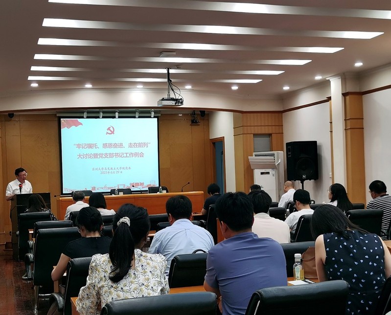 为深入开展学习贯彻习近平新时代中国特色社会主义思想主题教育,凝聚广泛思想共识,汇聚强大精神动力, 6月29日下午,欧美色情片 党委在天赐庄校区红楼115会议室召开“牢记嘱托、感恩奋进、走在前列”大讨论暨党支部书记工作例会。院党委理论学习中心组成员、各党(总)支部书记、副书记和委员参加会议。会议由院党委书记陈建军主持。