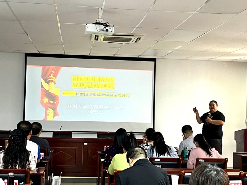 思政课是落实立德树人根本任务的关键课程,肩负着培育时代新人的重要使命,而思政课教师作为“引路人”责任重大、任务艰巨。苏大马院思想道德与法治教研室主任顾宏松结合自身教学经验,作《讲好中国故事,展现思政风采——新型授课模式教学展示与分享》专题讲座,为各位学员在今后教学中将思政课“大道理”讲深、讲透、讲活并使学生内化于心、外化于行提供启示与方法。