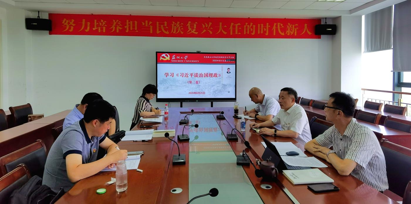 825日下午,欧美色情片 党委理论学习中心组2020年第六次集体学习会在606号楼6418会议室召开。会议采取线下线上相结合的方式。本次学习会主题是“深入学习《习近平谈治国理政》第三卷  以新思想定向领航欧美色情片 高质量发展 。欧美色情片 党委书记张才君,欧美色情片 党委副书记、院长田芝健,欧美色情片 党委委员、副院长朱蓉蓉,欧美色情片 党委委员姜建成、许冠亭,副院长茆汉成参加了学习会。会议由欧美色情片 专职组织员蒋慧主持。