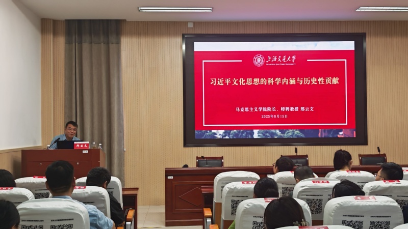 上海交通大学邢云文教授以《把握“习近平文化思想”科学内涵与原理性贡献》为题作专题讲座。重点讲解了“7个着力”的核心内容,涵盖党的领导、意识形态建设、核心价值观培育、新闻舆论工作、中华优秀传统文化传承发展、文化事业与文化产业发展、国际传播能力建设等关键领域。他特别强调,党对宣传思想文化工作的领导是掌握文化领导权的根本保证,确立马克思主义在意识形态领域的指导地位的根本制度意义重大。他结合自身研究经历,鼓励广大思政课教师要怀揣情怀、研究大问题、积极推动理论创新,构建中国自主知识体系。