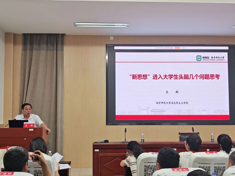 南京师范大学王跃教授以《“新思想”进入大学生头脑几个问题思考》为题作专题讲座。提出讲好思政课要精准取舍重点,如聚焦新发展理念等原创观点讲深讲透;要构建逻辑体系,解析“十个明确”等理论框架,推动教材体系向教学体系转化;要突出问题导向,回应学生关心的难点、热点及“三观”问题。同时,结合南师“大思政课”改革实践指出,通过“网络自学知识+课堂精讲道理”的模式转型,学校思政课教学质量显著提升,多项成果获教育部认可。他希望高校加强横向交流,推动老教师与青年教师优势互补,在“三全育人”格局中彰显思政课的关键课程价值。