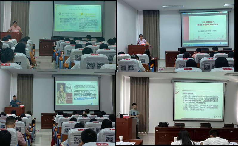培训班还邀请校内外多名专家教授分别围绕师德师风建设、党的二十大精神融入《概论》教学、《概论》课程教学展示及教学技术运用、习近平新时代中国特色社会主义思想的原创性贡献等方面进行专题辅导。