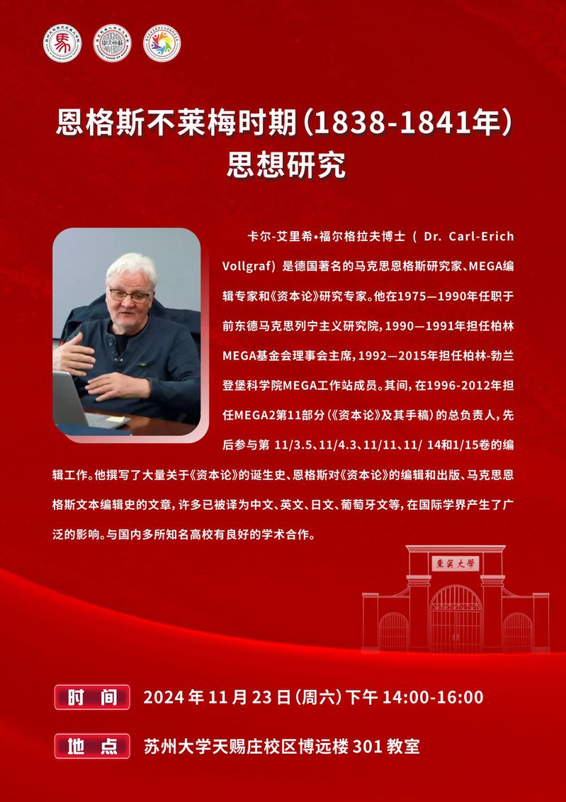 学术报告:恩格斯不莱梅时期(1838-1841年)思想研究