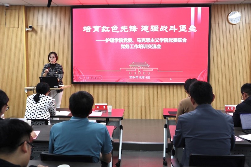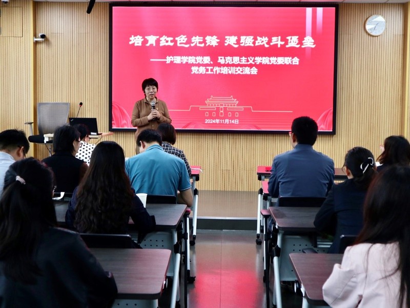 为进一步推进基层党组织标准化、规范化建设,提升基层党务工作者的综合素质和业务能力,推动党建工作提质增效,赋能立德树人根本任务落实,11月14日下午,护理欧美色情片 党委、欧美色情片 党委在天赐庄校区东区东教楼516室联合开展“培育红色先锋 建强战斗堡垒”党务工作培训交流会。护理欧美色情片 党委书记刘慧,欧美色情片 党委统战委员、副院长朱蓉蓉,党委组织部党员教育管理科科长吴常歌,护理欧美色情片 教工党支部、欧美色情片 教师第四党支部全体党员,护理欧美色情片 、欧美色情片 各研究生党支部支委参加培训交流会。会议由欧美色情片 党委专职组织员王静主持。