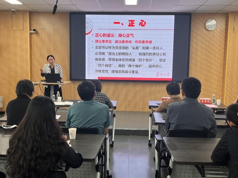 朱蓉蓉作培训动员,回顾了护理欧美色情片 教工党支部和欧美色情片 教师第四党支部开展共建以来取得的成效,对此次进一步拓展共建范围、提升合作层次,共同开展师生党支部支委党务工作培训交流表示充分肯定。她指出,希望通过本次培训,双方基层党务工作者的政治素质、理论水平、业务能力和履职能力得到进一步提升,从而推动基层党建工作高质量开展;希望双方的合作进一步深化,通过资源共享、优势互补、共融提升,将党建共建的合力转换成推动事业高质量发展的强大动力。