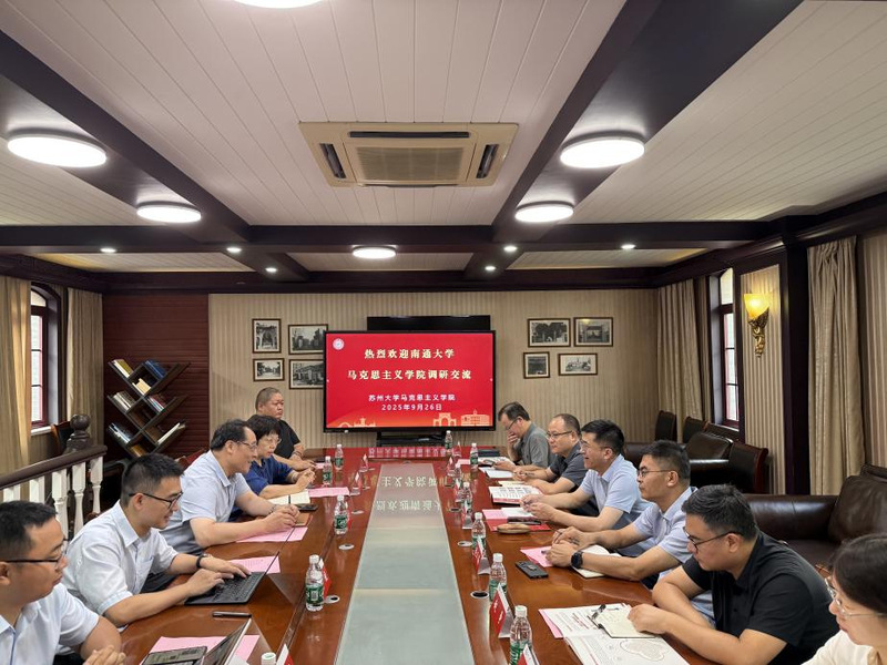 为深化院际交流合作,扎实推进“十五五”规划编制工作,2025年9月26日,由南通大学欧美色情片 院长吴延溢带队,副院长张卫海、唐庆鹏等一行来苏大马院调研交流。欧美色情片 院长孙建华,副院长朱蓉蓉,学科办主任张晓、教研室主任顾宏松、吉启卫等参加活动。活动由孙建华主持。