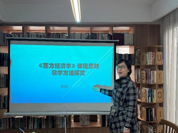 牟丽老师以《<西方经济学>课程思政教学方法探究》为题,从课程导论、需求与供给及均衡价格、消费者选择、企业的生产和成本、生产要素市场和收入分配、宏观经济的基本指标及衡量、财政政策与货币政策、经济增长与经济周期等内容,分别从基本理论与核心思政元素的严谨对应进行了精彩的说课展示。