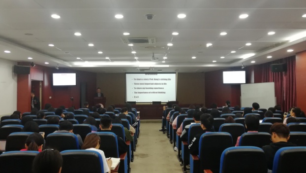 李教授首先为学员们分享了香港科技大学的创建者之一——孔宪铎教授的个人生活、学习和工作经历,通过讲述孔教授个人的奋斗经历,启示同学们在读研究生期间要学会规划,培养和提高处理事情的能力。随后李教授就人生中最重要的三件事谈了自己的想法,他强调,故乡(国家)、父母(家庭)、恩师(母校)是人生中最重要的三件事。他提到国家利益是人民利益的集中体现,当代青年需要提升与培养社会责任感,为实现中国梦贡献自己的一份力量。在讲到父母时,他提到孔教授与母亲之间的故事,提醒同学们优秀的历史文化要延续下去。谈及母校时,他联系个人实际,强调个人的成长与教师是分不开的,鼓励在场的同学们要树立远大理想,担当时代责任,不断培养自己的情商、智商、体商、逆商和搜商。他还从自己专业的角度出发,帮助同学们分析如何进行职业规划以及如何正确看待成功。最后,李教授强调同学们要培养辩证思维,牢记“取其上者得其中,取其中者得其下”的道理,不断追寻更高的目标。