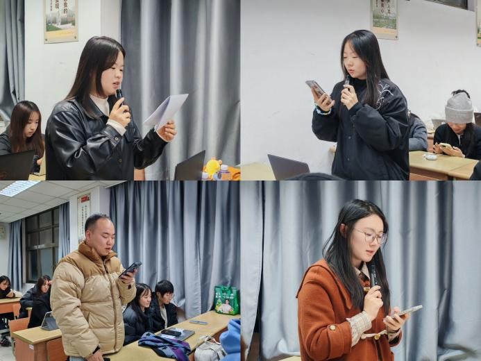 汇报结束后,2024级硕士研究生袁心月、刘雄峰、杨玉冰、张巧现场分享了学习感悟。