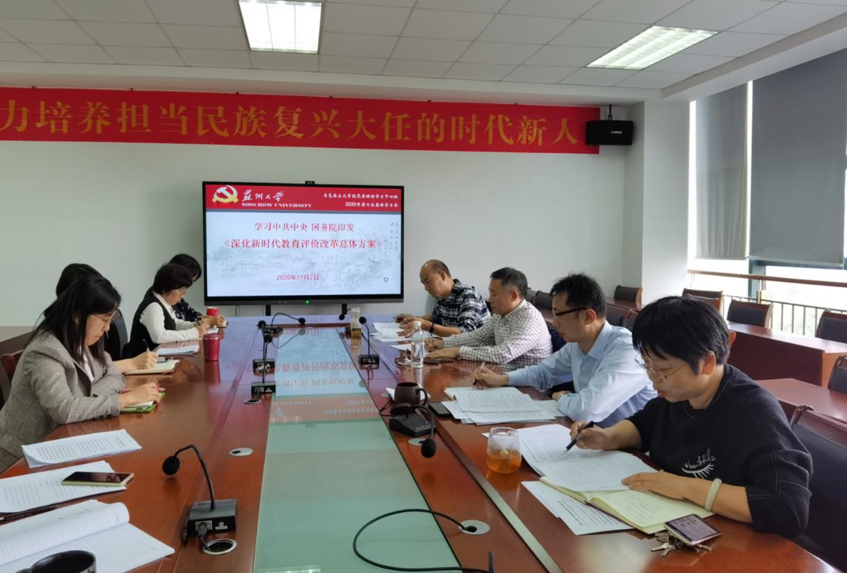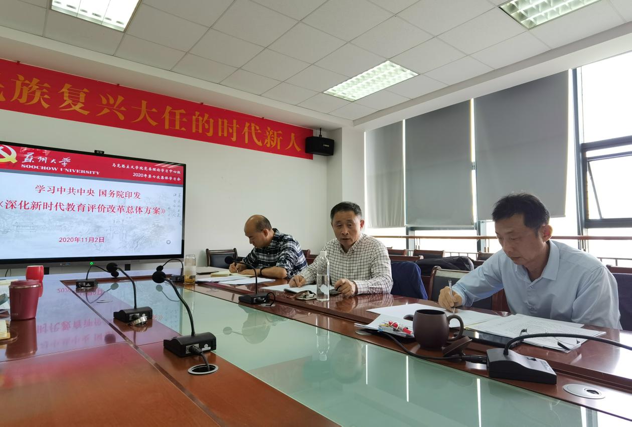 11月2日,欧美色情片 党委理论学习中心组2020年第七次集体学习会在606号楼6418会议室召开。本次学习会主题之一是学习中共中央、国务院印发的《深化新时代教育评价改革总体方案》,推动欧美色情片 教育教学改革创新 。欧美色情片 党委书记张才君,欧美色情片 党委副书记、院长田芝健,欧美色情片 党委统战委员、副院长朱蓉蓉,副院长茆汉成参加学习会。会议由张才君主持。