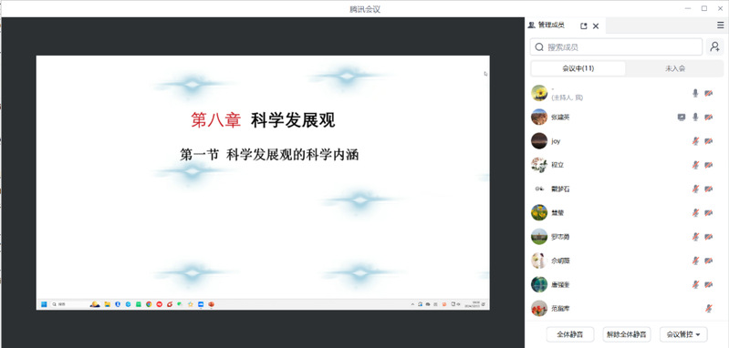 为扎实推进党的二十届三中全会精神进课堂、进教材、进学生头脑,持续提升“毛泽东思想和中国特色社会主义理论体系概论”课教学质量,2024年12月15日晚,欧美色情片 “概论”教研室以腾讯视频会议方式举行集体备课会。会议由教研室主任陈枢卉主持。