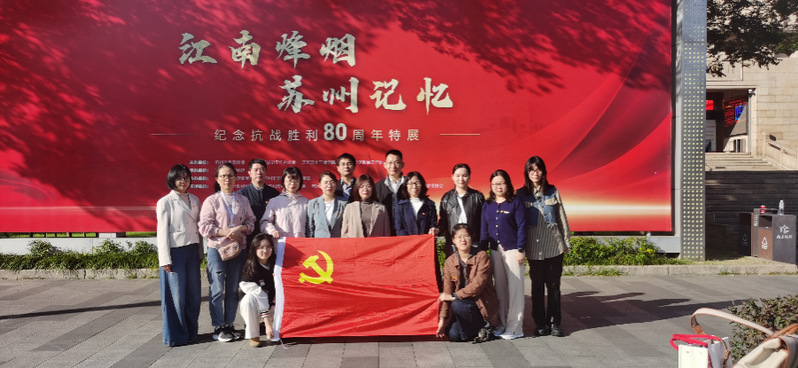 在实践参观阶段,全体党员前往苏州革命博物馆进行实地学习。在“江南烽烟苏州记忆”特展区,同志们通过珍贵的历史图片、文献和文物,深入了解了苏州军民的抗战历程,深刻感悟了伟大的抗战精神。在《阳澄烽火》展厅,大家沉浸式体验了运用现代多媒体技术再现的“洋沟溇战斗”,通过声光电的完美结合,切身感受新“江抗”战士与当地百姓并肩作战、英勇抗敌的革命精神。参观过程中,党员们还就如何加强馆校合作、用好红色资源赋能“大思政课”建设进行了深入交流。