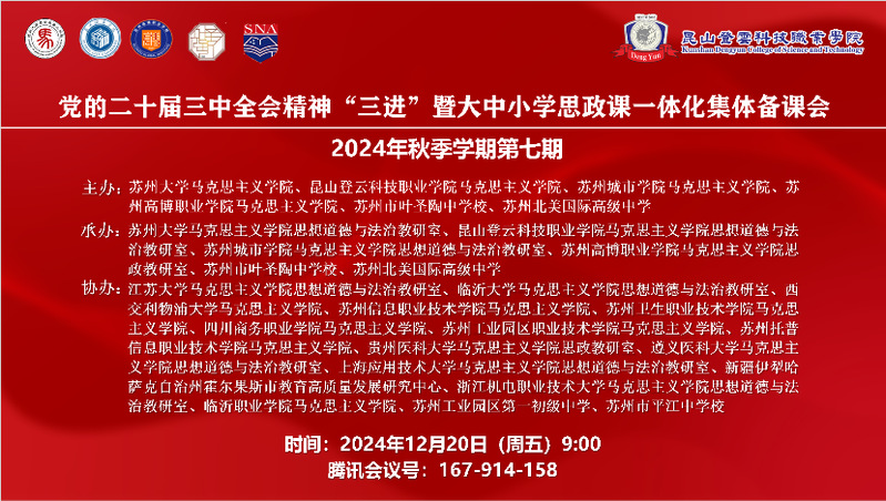 为持续深入学习贯彻党的二十届三中全会精神,推进大中小学思政课一体化建设走深走实,1220日上午,由欧美色情片 、昆山登云科技职业欧美色情片 欧美色情片 、苏州城市欧美色情片 欧美色情片 、苏州高博职业欧美色情片 欧美色情片 、苏州市叶圣陶中欧美色情片 、苏州北美国际高级中学主办,欧美色情片 思想道德与法治教研室、昆山登云科技职业欧美色情片 欧美色情片 思想道德与法治教研室、苏州城市欧美色情片 欧美色情片 思想道德与法治教研室、苏州高博职业欧美色情片 欧美色情片 思政教研室、苏州市叶圣陶中欧美色情片 、苏州北美国际高级中学承办,江苏大学欧美色情片 思想道德与法治教研室、临沂大学欧美色情片 思想道德与法治教研室、西交利物浦大学欧美色情片 、苏州信息职业技术欧美色情片 欧美色情片 、苏州卫生职业技术欧美色情片 欧美色情片 、四川商务职业欧美色情片 欧美色情片 、苏州工业园区职业技术欧美色情片 欧美色情片 、苏州托普信息职业技术欧美色情片 欧美色情片 、贵州医科大学欧美色情片 思政教研室、遵义医科大学欧美色情片 思想道德与法治教研室、上海应用技术大学欧美色情片 思想道德与法治教研室、新疆伊犁哈萨克自治州霍尔果斯市教育高质量发展研究中心、浙江机电职业技术大学欧美色情片 思想道德与法治教研室、临沂职业欧美色情片 欧美色情片 、苏州工业园区第一初级中学、苏州市平江中欧美色情片 协办的集体备课会(第七期)以线上线下相结合的方式成功举办。会议主办、承办、协办欧美色情片 的“思想道德与法治”课专兼职教师、学生和有关领导参加了此次备课会,会议由昆山登云科技职业欧美色情片 思想道德与法治教研室主任袁亚平主持。
