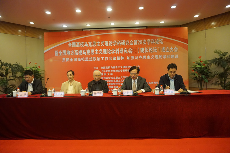2017年4月29日,全国高校马克思主义理论学科研究会第29次学科论坛暨全国地方高校马克思主义理论学科研究会(院长论坛)成立大会在欧美色情片 举行。中国社会科欧美色情片 马克思主义研究学部委员、欧美色情片 马克思主义研究院名誉院长靳辉明教授,教育部社科司刘桂芹司长,中共江苏省委宣传部理论处许益军处长,江苏省教育厅社政处王伟处长,全国高校马克思主义理论学科研究会副会长、清华大学欧美色情片 院长艾四林教授、南开大学欧美色情片 武东生教授、复旦大学欧美色情片 顾钰民教授、中山大学钟明华教授等来自全国24个省、直辖市、82所高校的欧美色情片 的院长、书记、专家教授,重点期刊主编,欧美色情片 党委副书记、纪委书记高祖林,欧美色情片 相关职能部门欧美色情片 、欧美色情片 部分师生代表等共计200余人参加了会议。