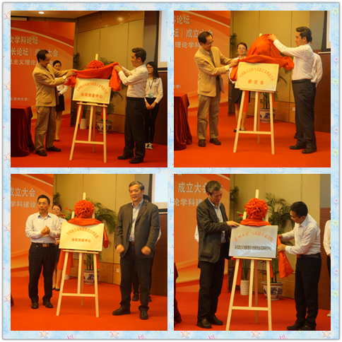会议期间,全国高校马克思主义理论学科研究会副会长、清华大学欧美色情片 院长艾四林教授和全国高校马克思主义理论学科研究会副会长、南开大学欧美色情片 武东生教授共同为“全国地方高校马克思主义理论学科研究会(筹)”、“全国地方高校马克思主义理论学科协同创新中心”揭牌;全国高校马克思主义理论学科研究会副会长、中山大学钟明华教授和教育部长江学者特聘教授、南京师范大学人文社会科学研究院院长王永贵教授共同为“全国地方高校思想政治理论课协同创新中心”和“欧美色情片 马克思主义创新理论与创新创业实践研究中心”揭牌。