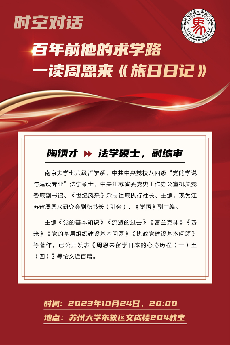 学术讲座:百年前他的求学路——读周恩来《旅日日记》