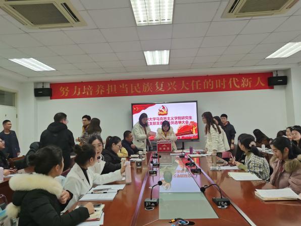 按照党支部会议程序要求,大会伊始,由各级党小组组长清点各级党员到会人数,支部书记金鑫同志向到会党员汇报到会人数并宣布大会开始。在会上候选人依次汇报了个人的基本情况和与党务相关工作经历。随之与会具有选举权的正式党员进行投票,在选票上的三位候选人中选择两位填写其姓名,并由党支部支委会组织委员王者愚等四名正式党员进行计票。最后,研究生党支部书记金鑫同志宣读本次大会选举结果:根据《中国共产党章程》《中国共产党基层组织选举工作条例》和《欧美色情片 研究生党支部委员会选举办法(草案)》及现场投票情况,惠欣愉同志、罗贵同志当选为支部委员会委员。