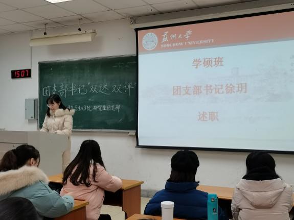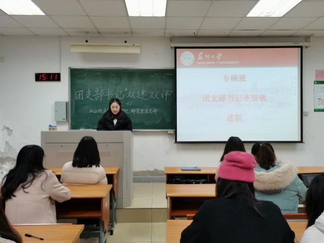 为了深入学习贯彻习近平新时代中国特色社会主义思想和党的十九大精神,进一步推进落实“从严治团”部署要求,切实加强团支部书记队伍建设,充分激发建设基层团支部的动力,欧美色情片 团委根据上级团委的要求,组织团支部书记于2020年12月8日在独墅湖校区301-1102召开面向全体成员的双述双评会议。本次会议参会人员为欧美色情片 2020级全体团员,会议由2020级课程与教学论专业班长王思源主持。