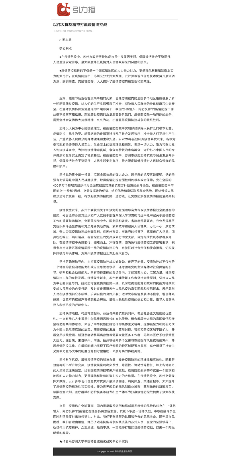 罗志勇:以伟大抗疫精神打赢疫情防控战