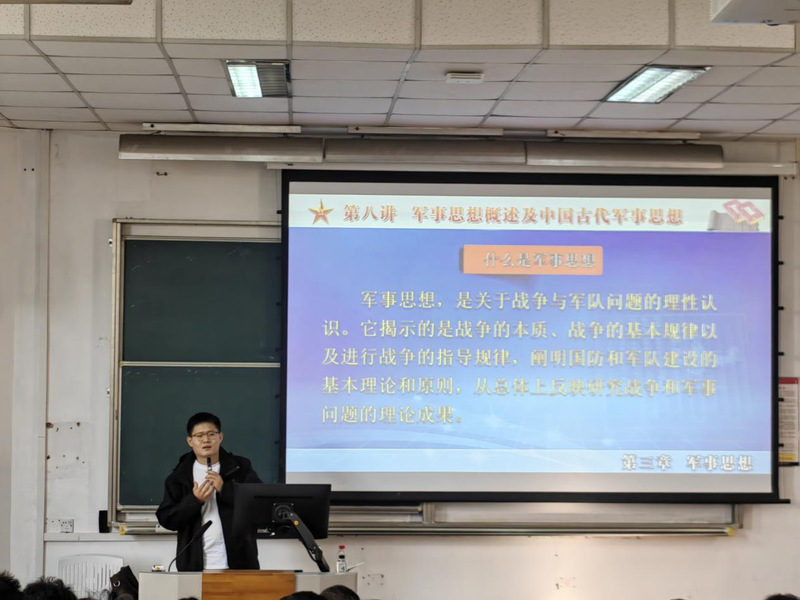 陆政廷老师以《军事思想概述及中国古代军事思想》为题作了精彩展示。授课过程中,陆老师精神饱满、教态自然、声音洪亮,讲授内容条理清晰、运用案例精准恰当,在课程中巧妙融入优秀传统兵学文化的苏州元素,充分体现了课程思政理念,取得了较好的教学效果。