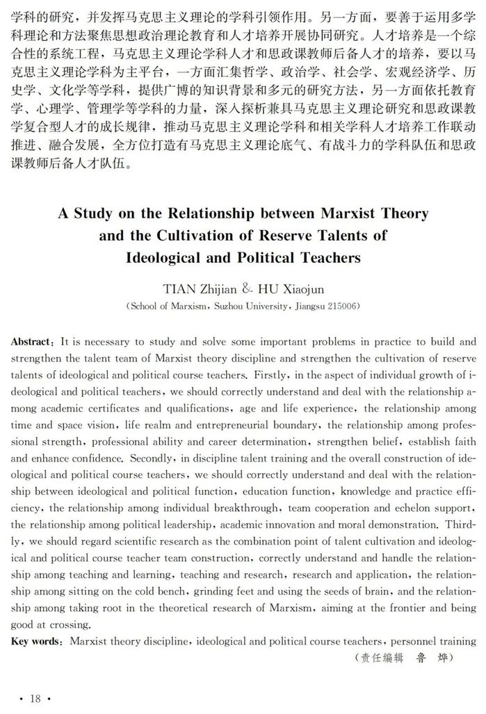 田芝健 胡小君:马克思主义理论学科与思政课教师后备人才培养若干重大关系研究