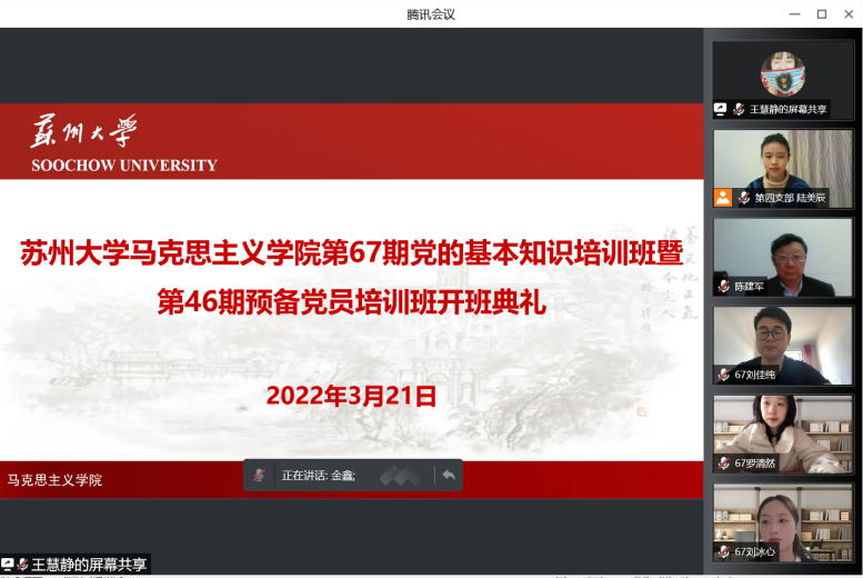 党委书记、分党校校长陈建军,学生党总支书记金鑫,研究生党员服务中心成员,第67期党的基本知识培训班、第46期预备党员培训班全体学员参加了此次开班典礼。本次开班典礼由2021级硕士研究生陆美辰主持。