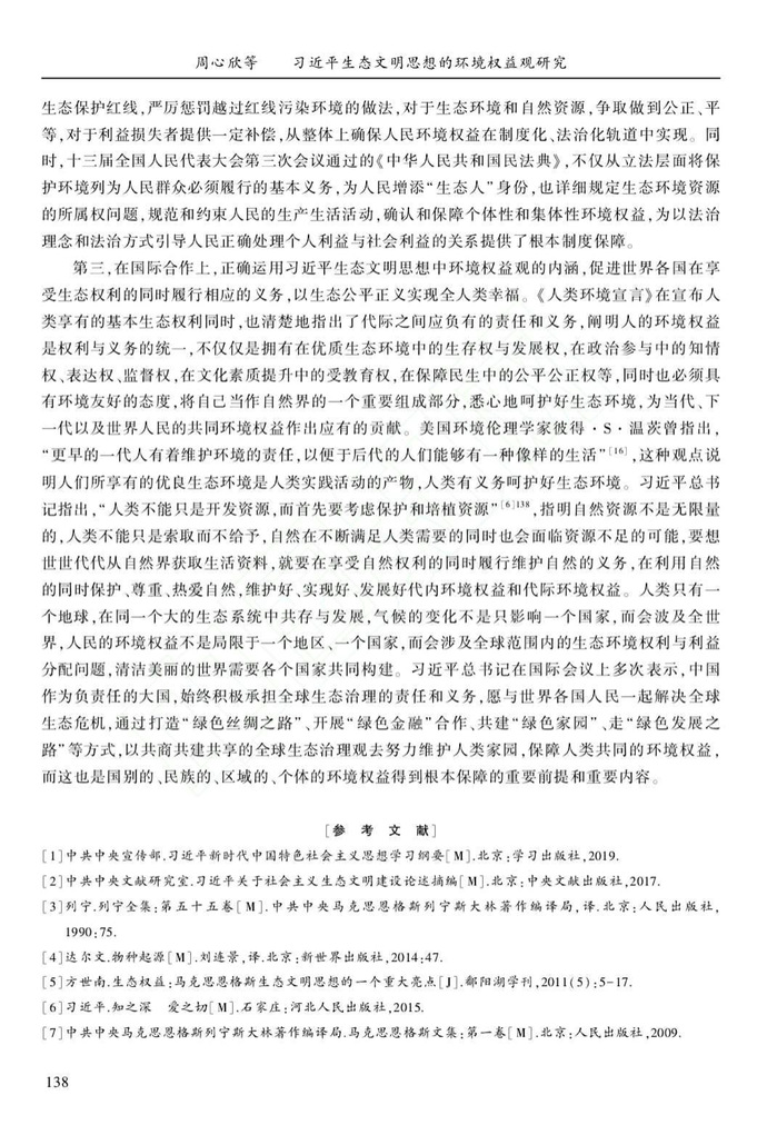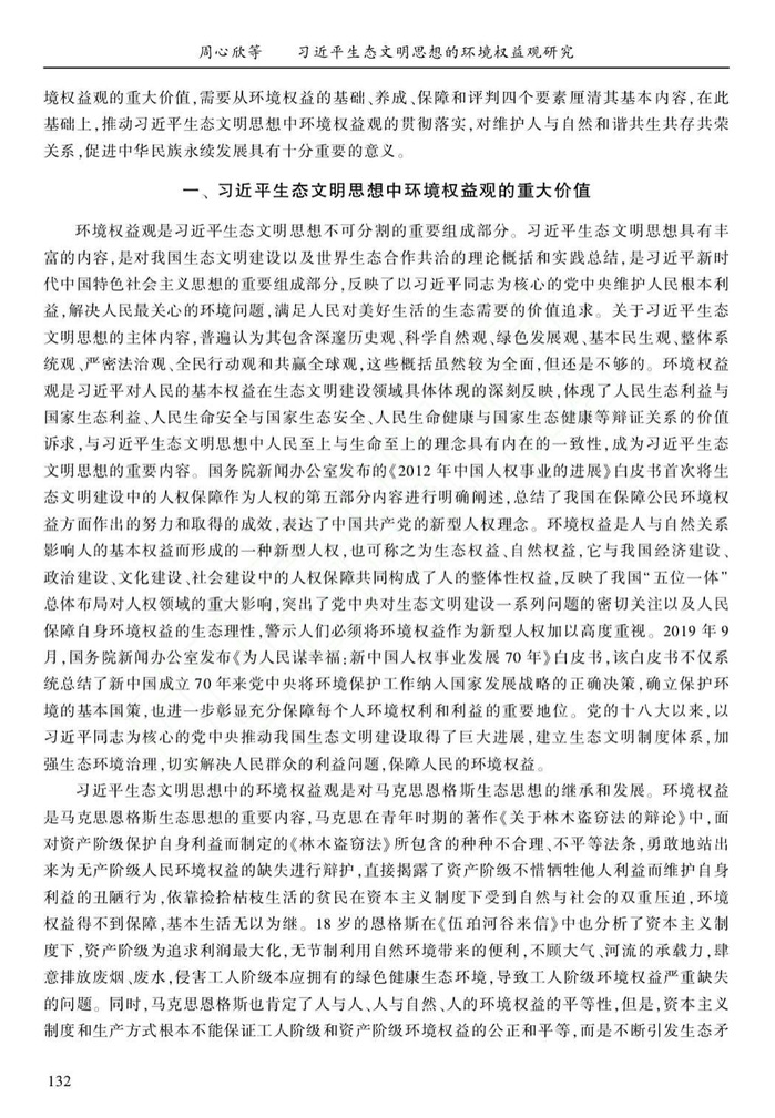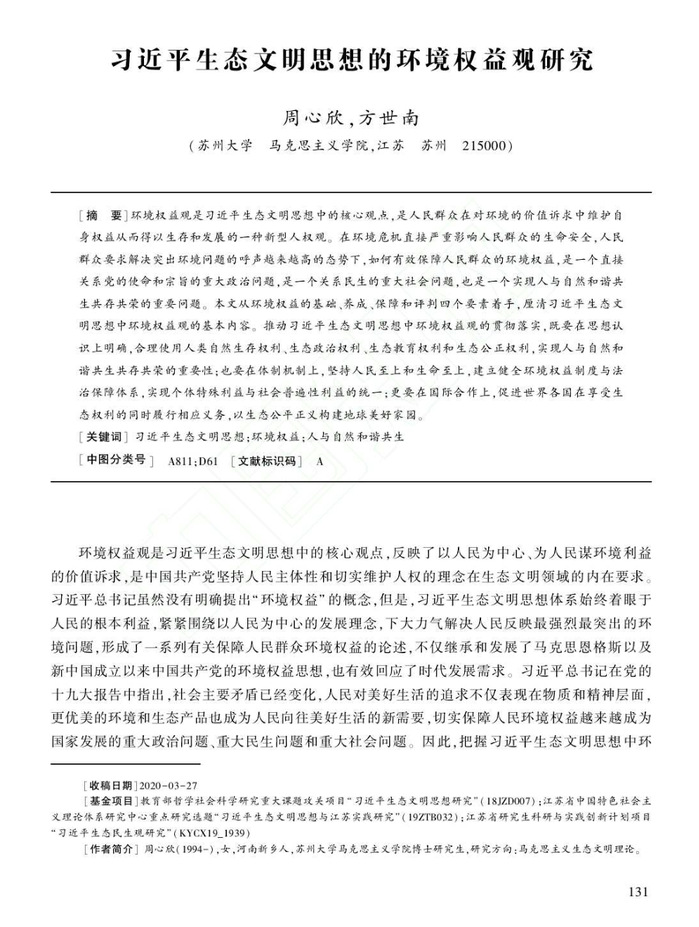 周心欣 方世南:习近平生态文明思想的环境权益观研究
